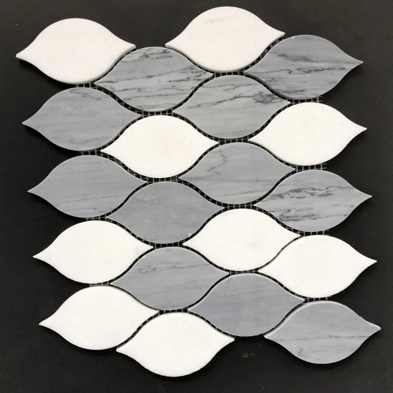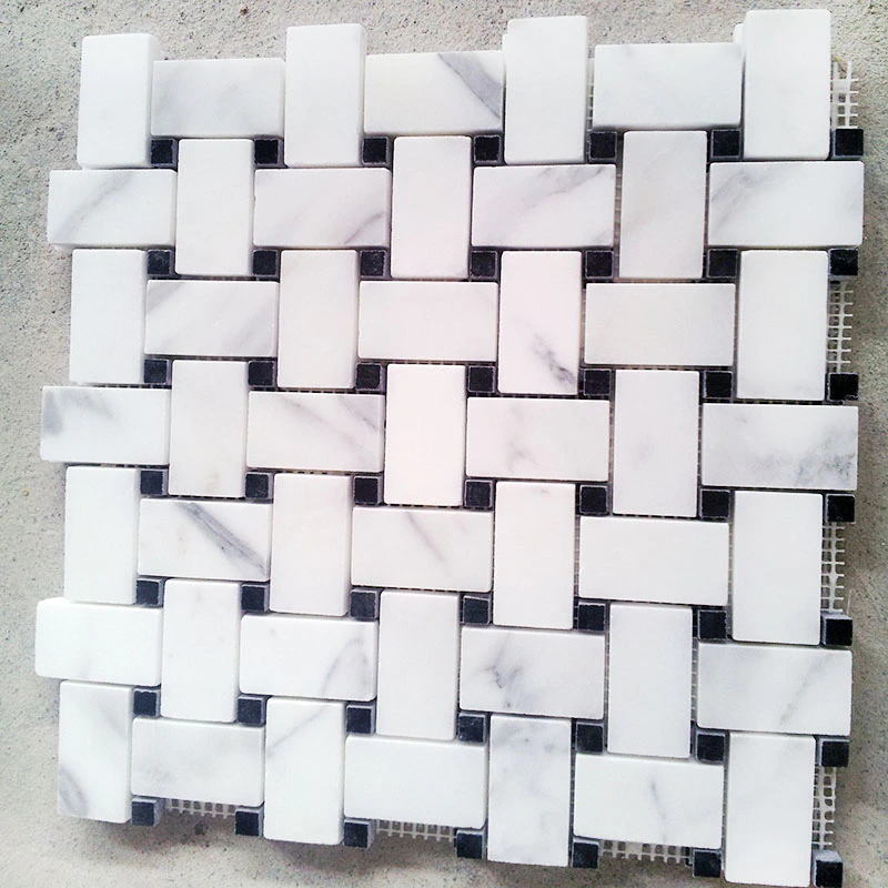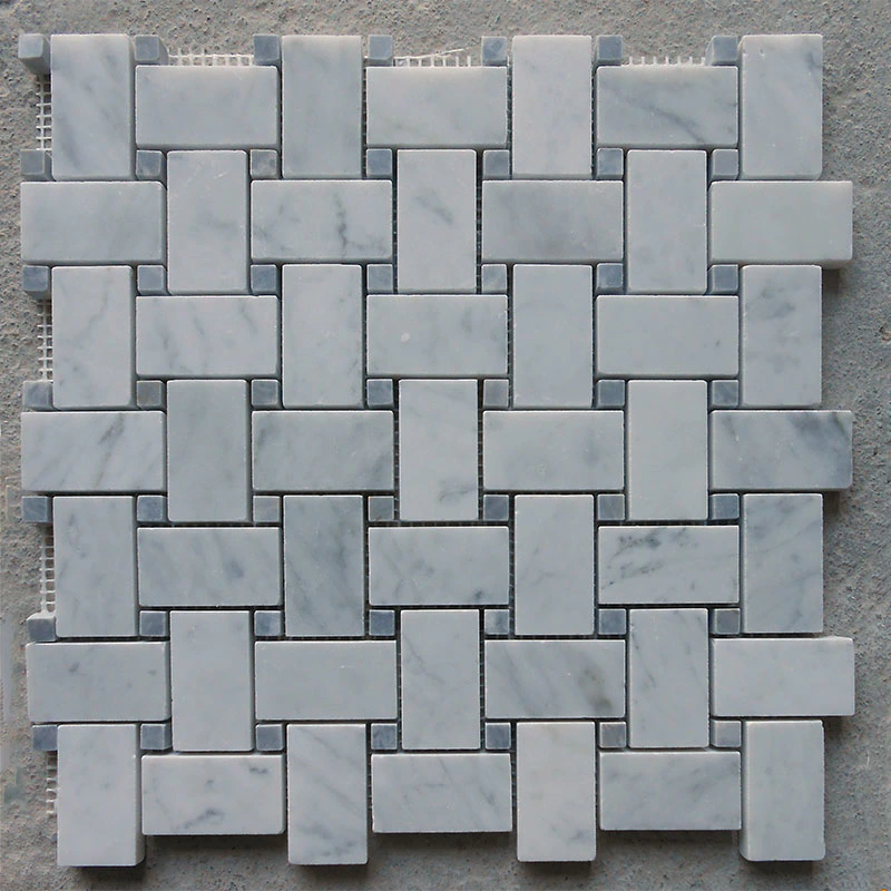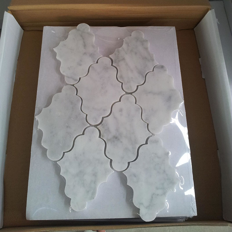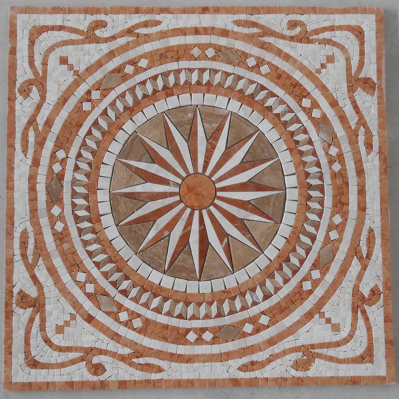 Geometrical waterjet mosaic tiles in Carrara and ThassosInquire -