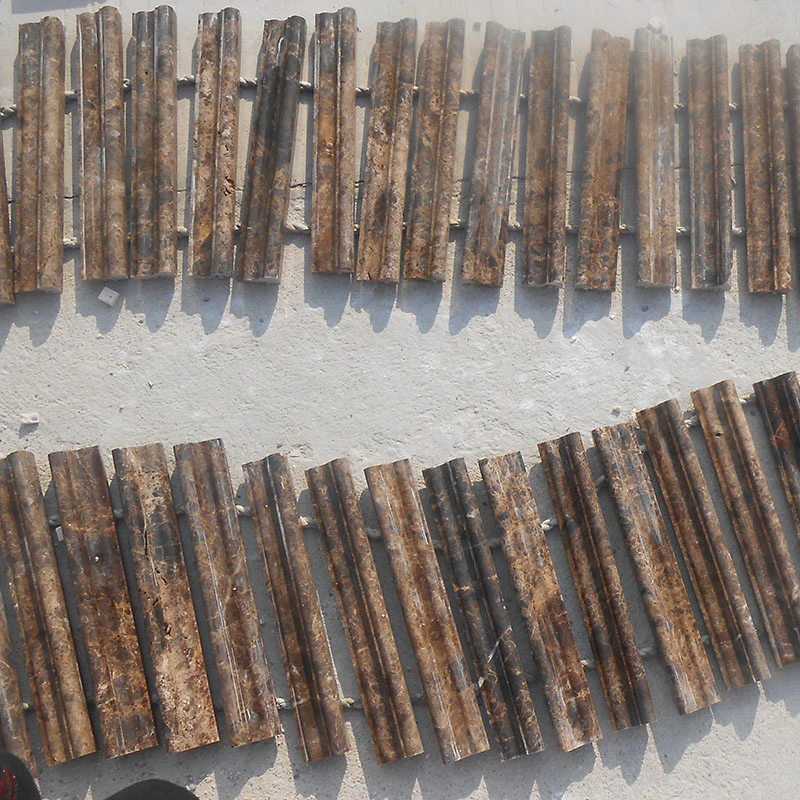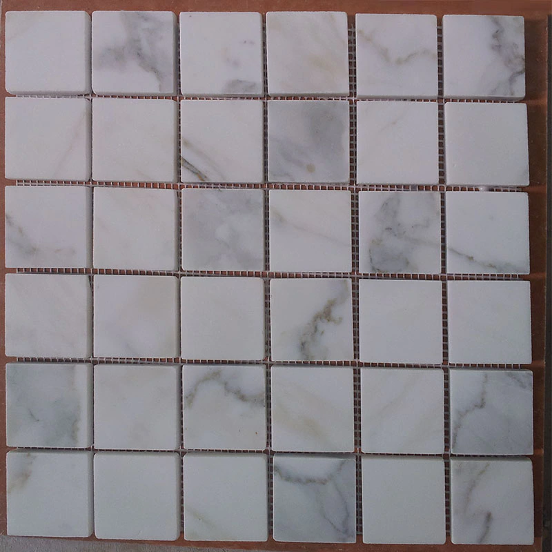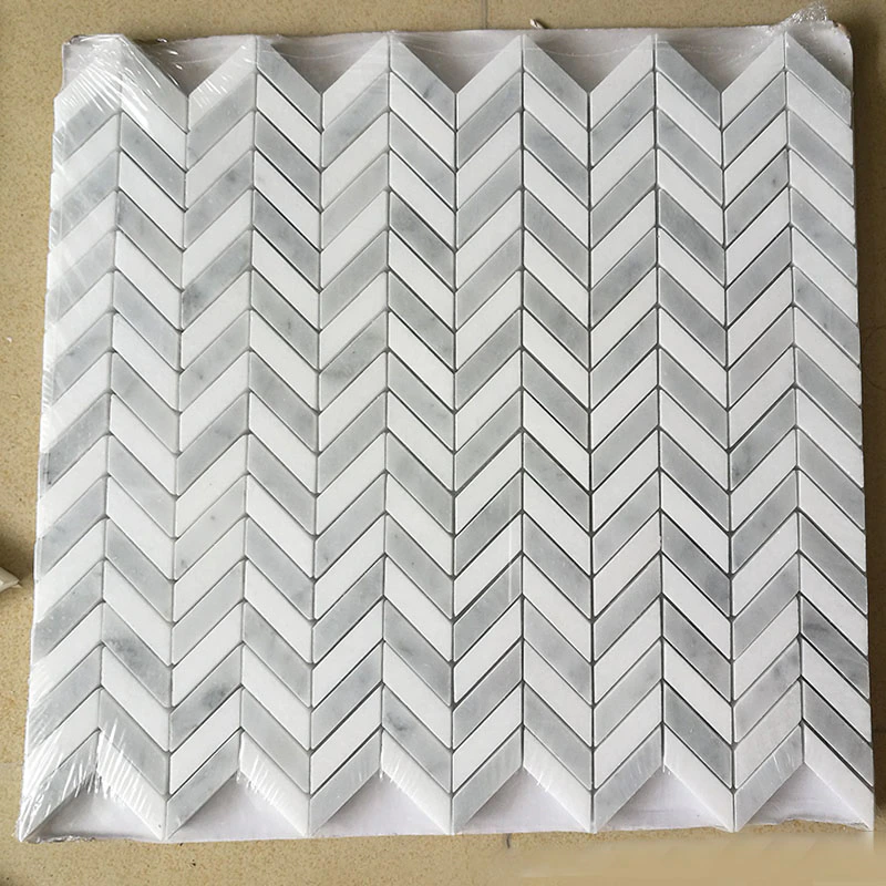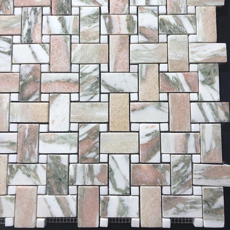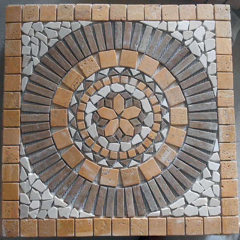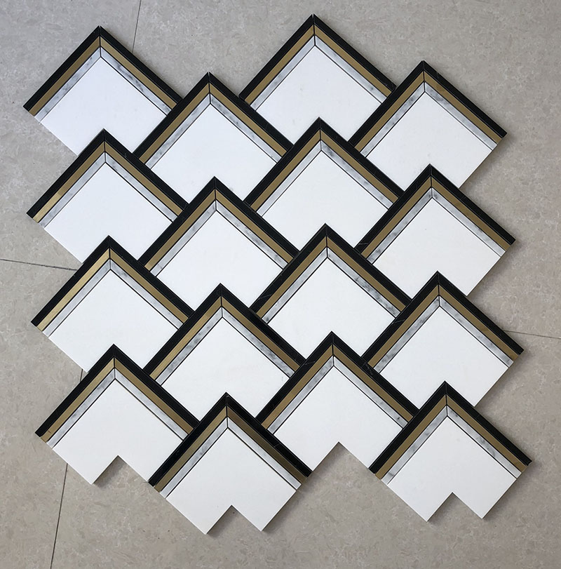 Geometrical waterjet mosaic tiles in Thassos and BrassInquire -