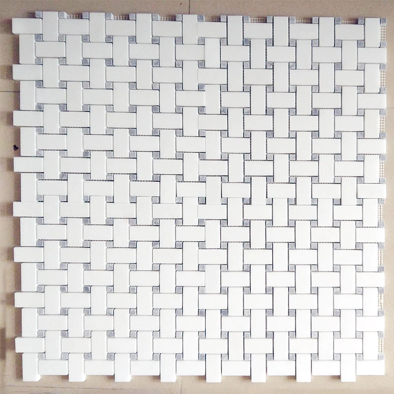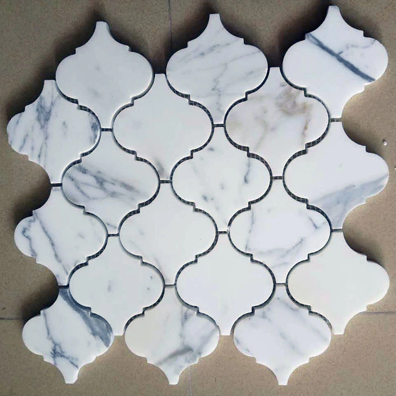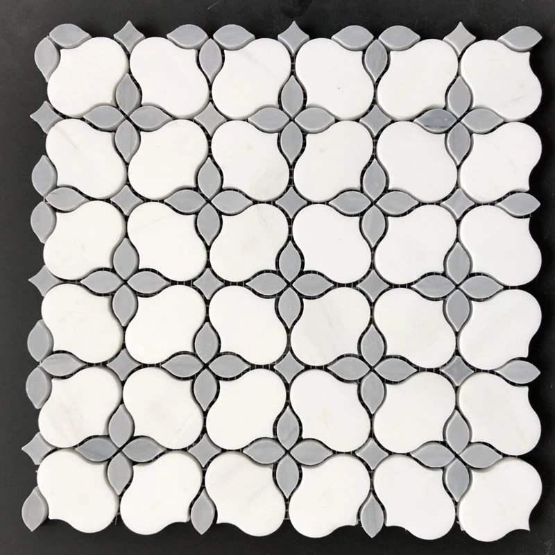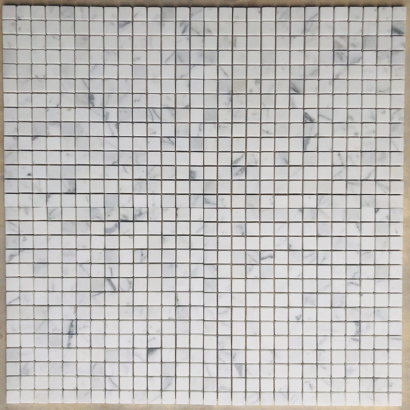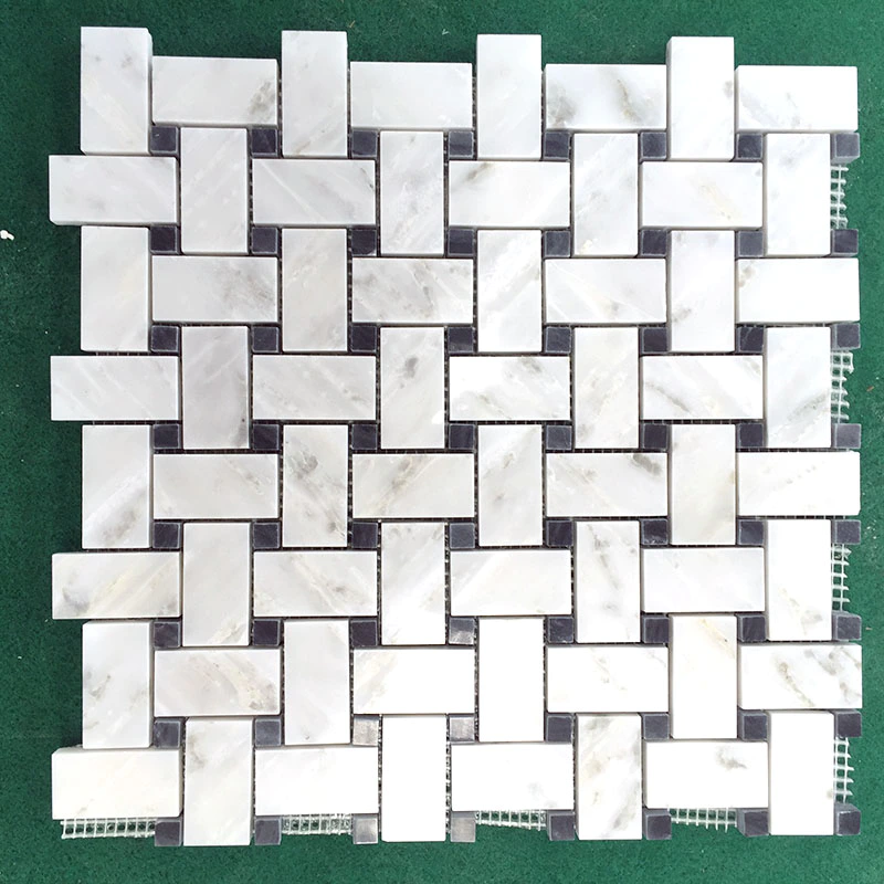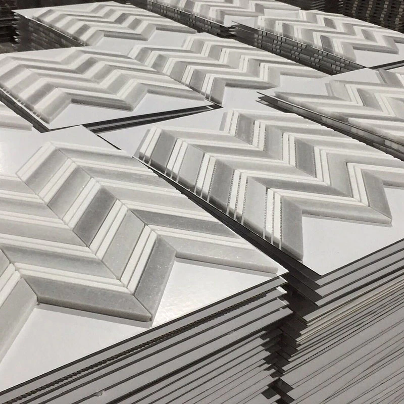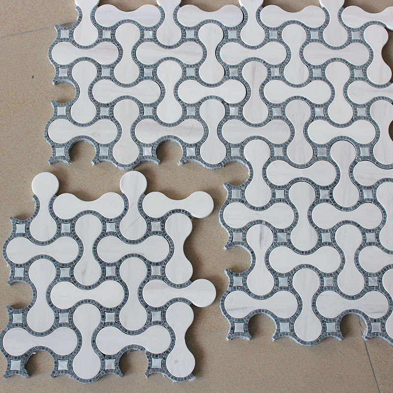Waterjet mosaic tile in Thassos and Carrara DarkInquire -