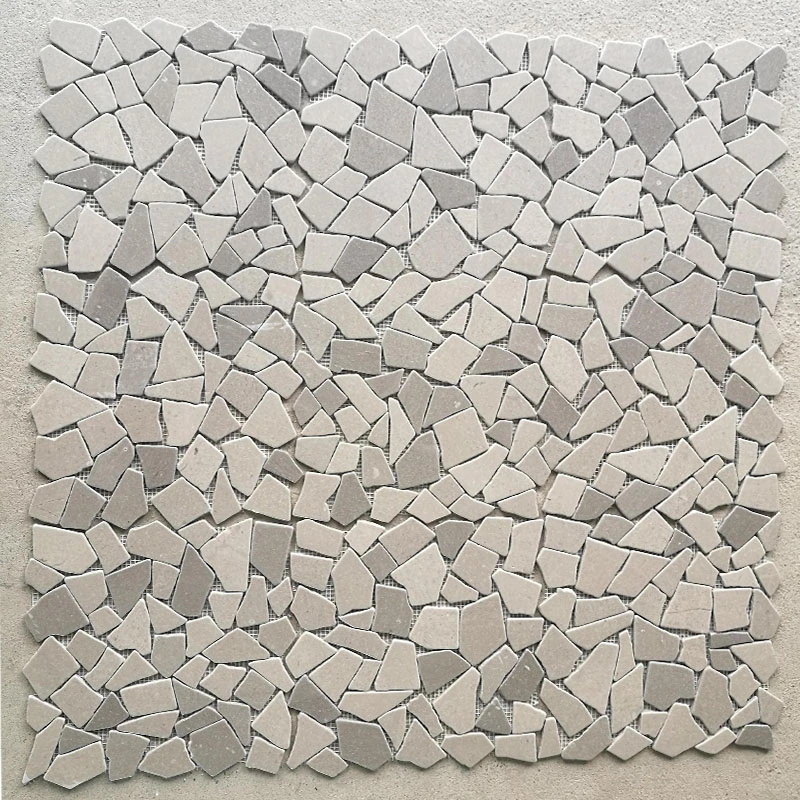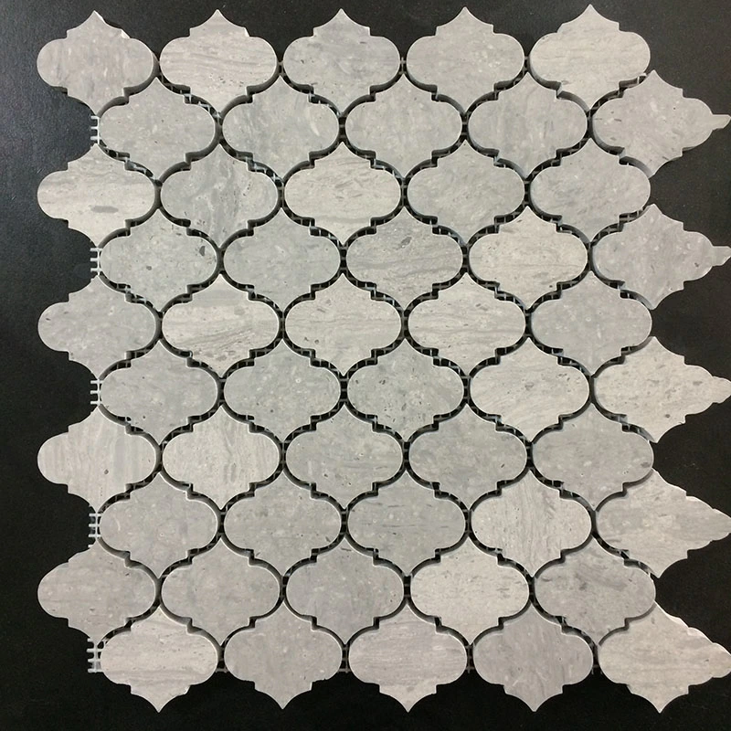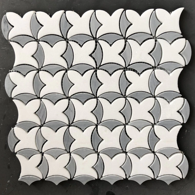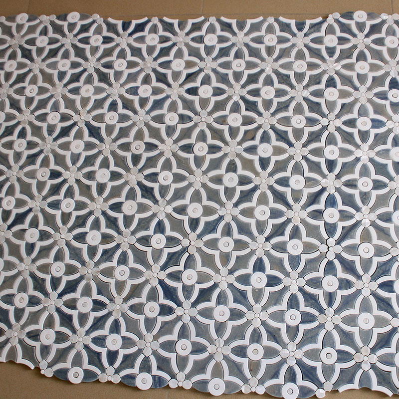 Flower waterjet mosaic tiles in Azul Macauba and ThassosInquire -
