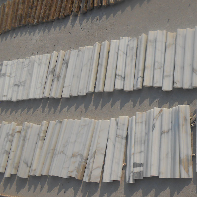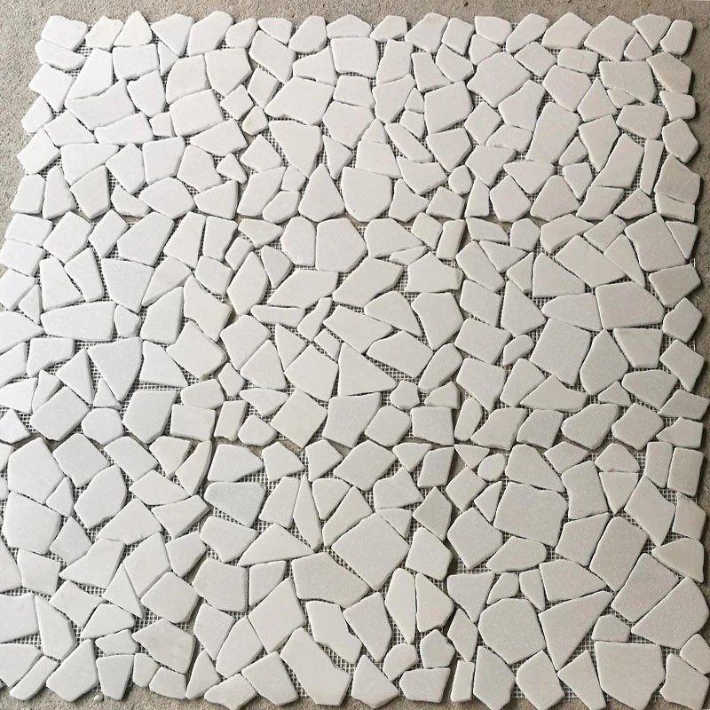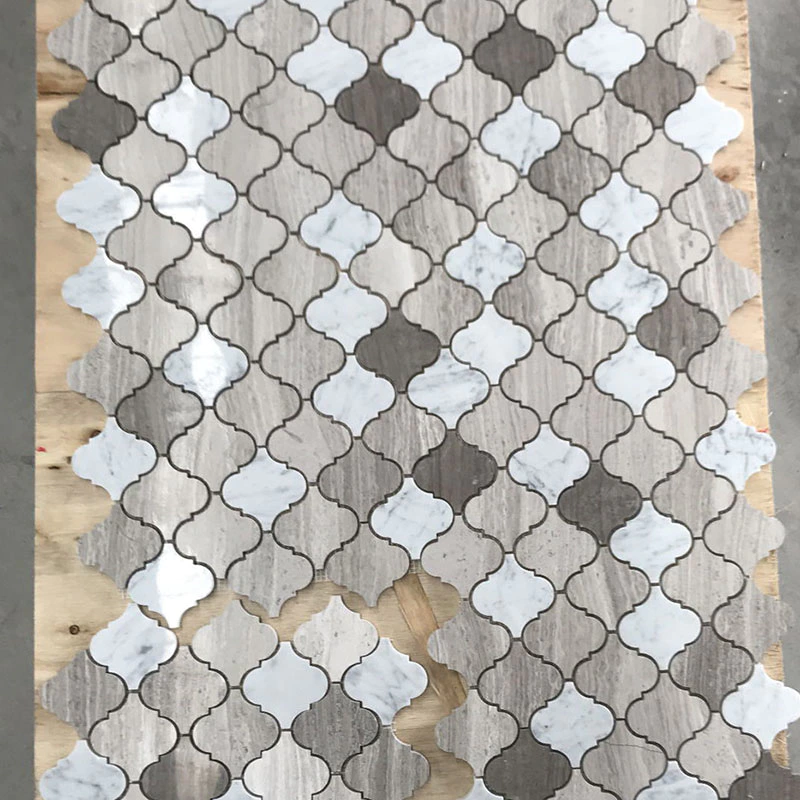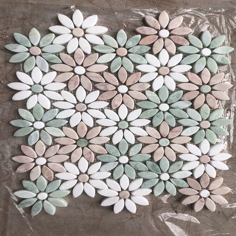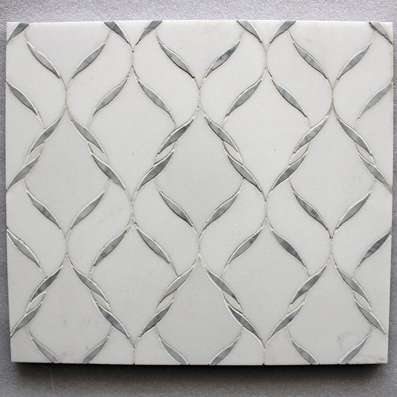 Tulip pattern waterjet mosaic tiles in Thassos and Carrara DarkInquire -
