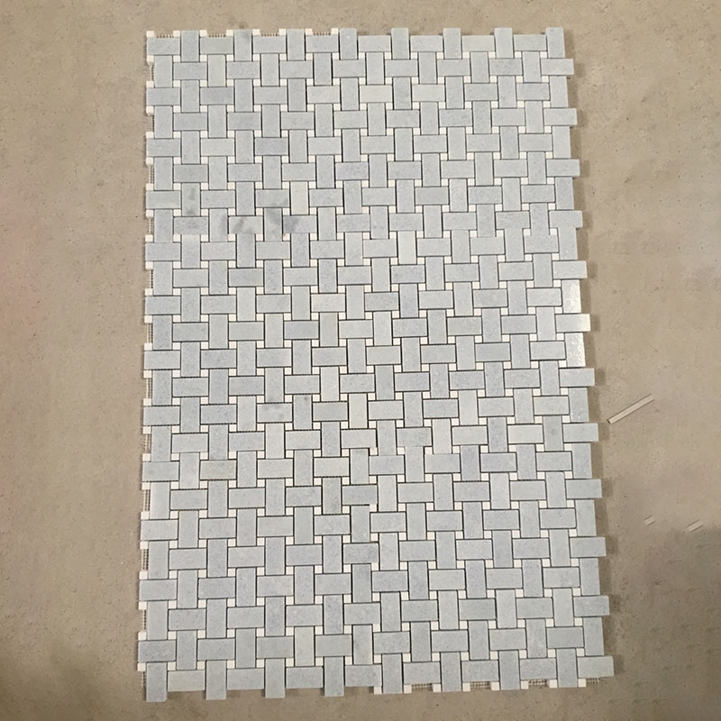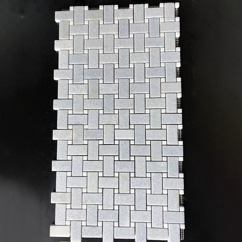 Blue Celeste Basketweave with Thassos dot Marble mosaics